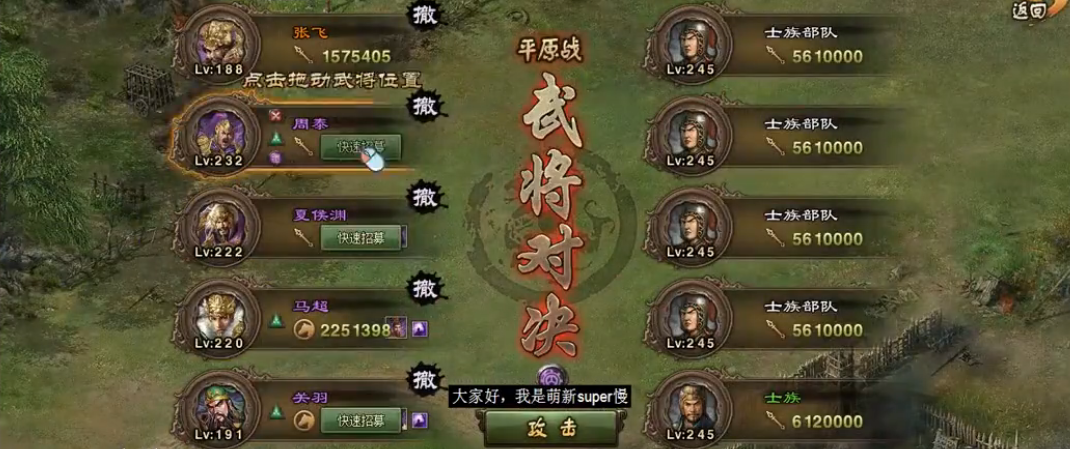 选择合适的武将至关重要。推荐使用防御高、血量厚的武将照顾阿斗,比如张飞带周泰,搭配极灵龟或极霸下装备,这样能确保阿斗的安全。其他武将可以选择输出型或战法型,比如关羽、司马懿、甘宁等,关羽觉醒后手动触发战法能快速推进,司马懿的地形加成和反弹效