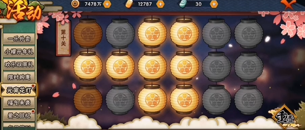 火影忍者手游灯笼十关的通关关键在于观察规律与逻辑推理。这一关的花灯布局通常呈现对称或周期性变化,玩家需从角落或边缘的灯笼入手,记录每次点击后相邻灯笼的状态变化。重点在于发现触发顺序的固定模式,例如某些灯笼会影响上下左右相邻灯笼的明暗状态。通