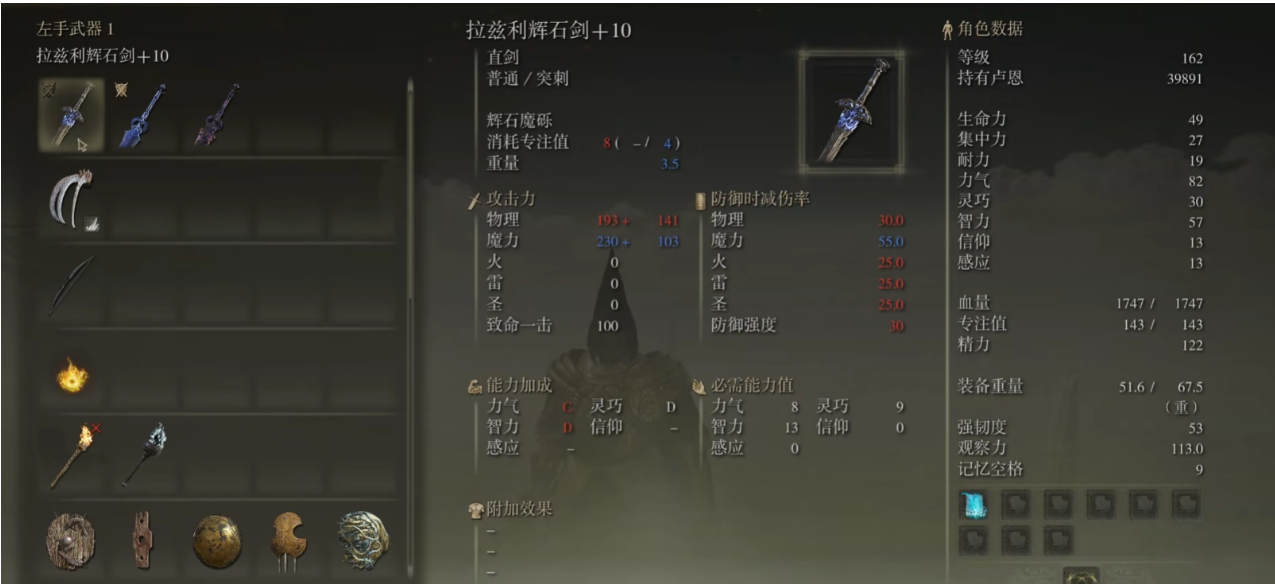 法师职业的核心输出依赖魔法,但近战武器作为辅助手段同样重要。选择合适的剑类武器能有效弥补法师在近距离战斗中的短板,同时部分武器还能与魔法形成互补。法师常用的剑包括杖剑、辉石剑、结晶剑等,它们通常具备魔法补正或特殊战技,能适配智力加点的属性需