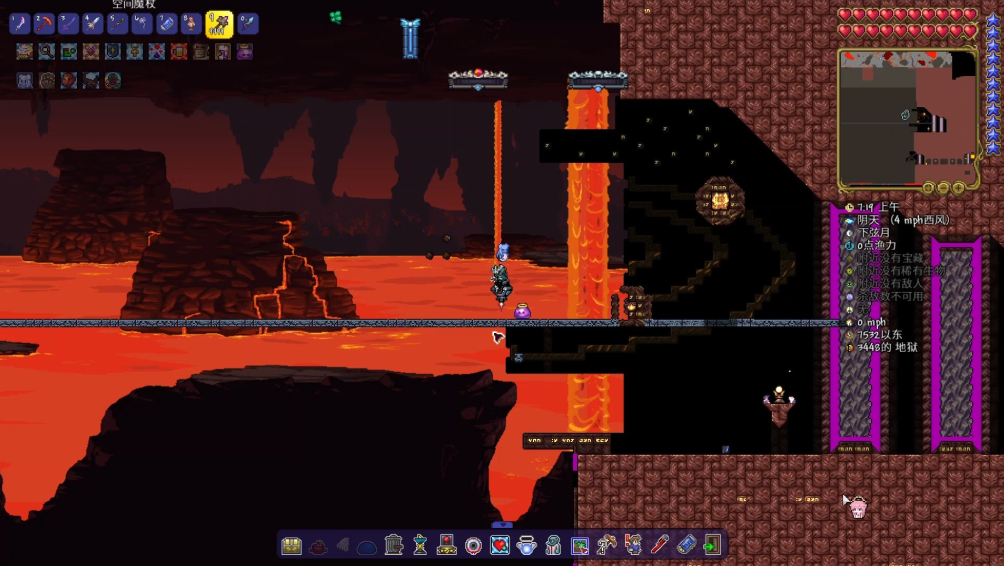 进入地狱前一定要做好充分准备,这可是整个游戏中最危险的区域之一。首先得确保装备足够强力,至少要有暗影或克苏鲁之眼级别的防具,否则那些会飞的恶魔和火焰小鬼分分钟让你吃瘪。武器也得升级到能快速清理怪物的水平,毕竟地狱里的敌人血厚攻高,拖太久容易被围殴。别忘了带上熔岩护盾,它能让你在岩浆里游泳而不掉血,这可是保命神器。药水更是不能少,治疗药水、铁皮药水、防火药水都得备齐,关键时刻能救你一命。