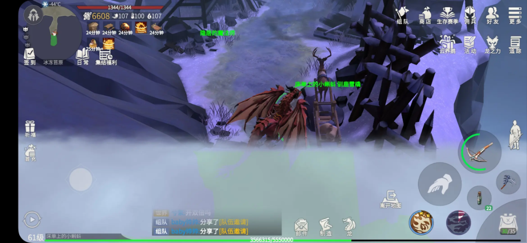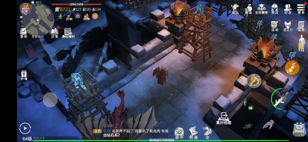 冰冻苔原是咱们在40级解锁的重要经验副本,里面全是狼群和一只狼BOSS,双倍经验下每只狼能提供上万经验值。记得提前准备好南瓜粥和油脂应对低温,体温降到0时先吃南瓜粥再补油脂,能把体温稳定在0-1度避免冻伤。地图北边有隐藏的投石机和主塔需要维修,不过目前主塔缺少龙骨之地掉落的暗影巨龙的灵魂材料,暂时修不了投石机。