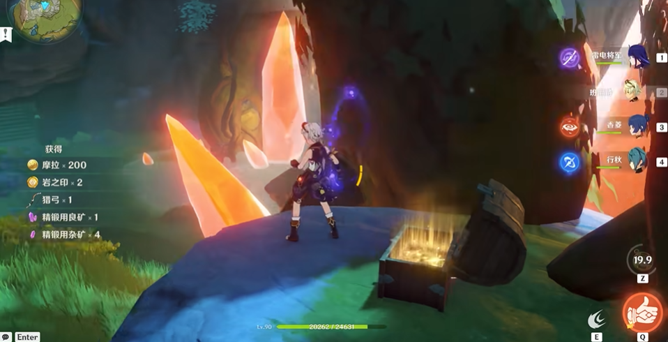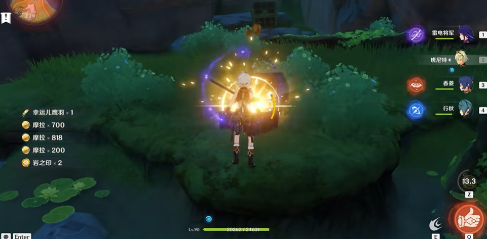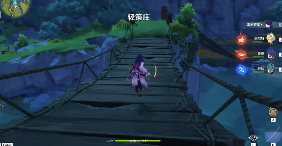 开启轻策庄桥下的宝箱,关键在于找到水中的圆盘机关并用岩属性角色激活它。这个机关位于桥下的水中,靠近宝箱位置,但直接踩上去会发现角色会浮起来无法触发。这时候就需要用到岩属性技能来解决问题。
