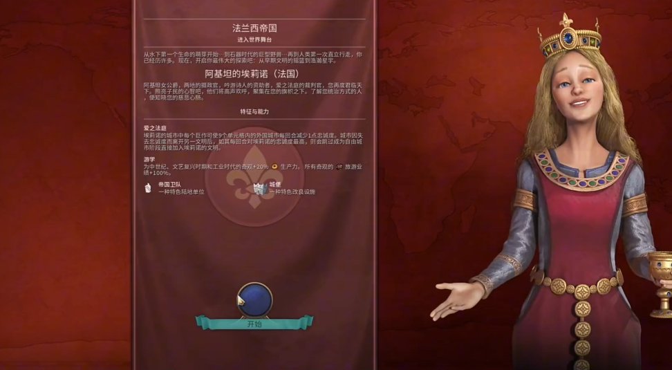 法国的文明特性强化了埃莉诺的文化和奇观策略。法国的特色能力游学为中世纪、文艺复兴和工业时代的奇观提供20%生产力加成,且所有奇观旅游业绩翻倍。这让你能更快抢到关键奇观,比如神谕所和大金字塔,进一步加速伟人点数获取和工人效率。特色单位帝国卫队在首都大陆作战时有额外战斗力,但通常不需要主动打仗,更多用于防御。特色改良城堡提供文化和金币加成,适合放在奇观或奢侈品旁,但优先级低于剧院广场。