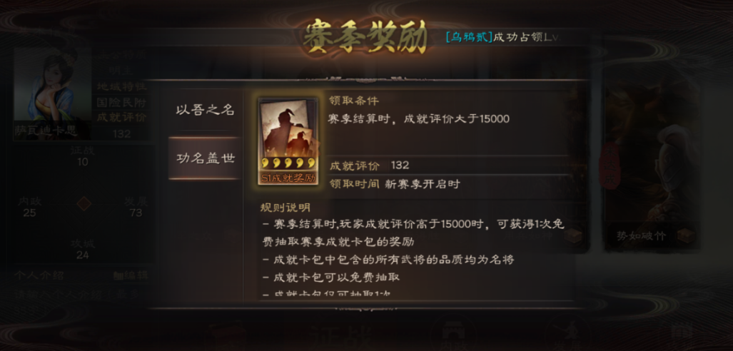 攻下洛阳后,游戏内会解锁更多玩法。比如参与赛季末的限时活动,这些活动通常奖励稀有战法或资源。还可以备战新赛季,整理武将卡和战法点,优先保留核心武将和强力战法。下赛季开荒会更顺利。如果咱们的同盟成为霸业联盟,记得领取专属卡包,里面有高概率抽到稀有橙将的机会。
