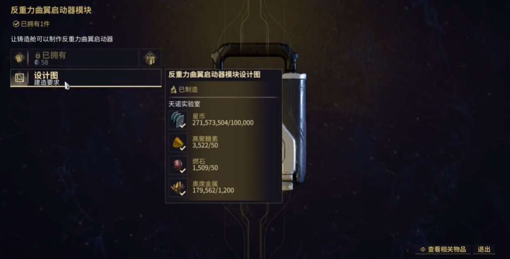 材料收集是制作曲翼的关键环节,奥希姆合金和高聚糖素可以通过特定星球任务获取。燃石建议在平原地区采集,配合资源加成道具效率更高。制作反重力启动器需要提前准备10万星币和各类材料,建议先完成氏族实验室的图纸复制。铸造过程需要24小时,合理安排制作顺序能节省等待时间。