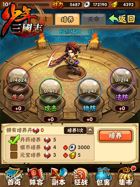 首充6元拿红将自选包性价比极高,但千万别无脑十连抽!神秘商店每天刷满次数,重点买天命石和培养丹,用将魂兑换即可。前期别用声望换元宝,优先换落月枪给主角。装备精炼石通过日常副本获取,宝物则靠夺宝翻牌,记得优先收集主角缘分宝物。对于零氪玩家,建议走三武将路线,比如曹操+郭嘉的魏国组合或周瑜+小乔的吴国搭配,既能减少资源消耗,又能快速形成战斗力。