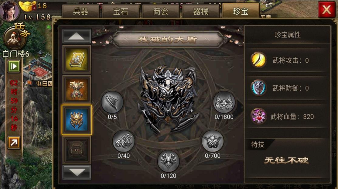 碎片攒够后,在珍宝界面修复即可激活属性加成。6珍以后的需求量会大幅增加,建议先专注前几件,避免资源分散。非R玩家可以靠日常任务和功勋奖励慢慢积累,超R玩家则能通过充值活动加速进度。记得合理分配资源,比如用丝绸兑换陨铁也是不错的选择。