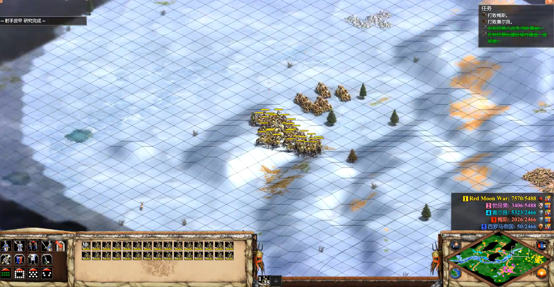 中期战斗需注重阵型控制和地形利用。将长枪兵布置于前排吸引火力,后排搭配步弓手或掷矛手进行输出。狭窄地形如山谷或桥梁能限制乃蛮人骑射手的机动优势,可预设伏击点或利用攻城器械封锁路径。若对方使用打包机等攻城武器,需派出轻骑兵快速突袭摧毁。