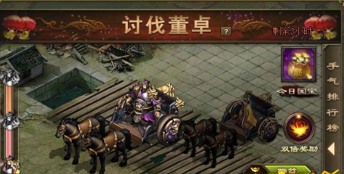 讨伐董卓是咱们在游戏里能拿到不少好东西的活动,参与这个活动主要能拿到陨铁、鞭子、经验、点券和宝石这些资源。陨铁可以用来升级战车,鞭子能抽奖拿额外奖励,经验能帮咱们快速升级武将,点券和宝石就更不用说了,都是提升实力的硬通货。每天打董卓的时候记得留到晚上再点右边黑色图片换陨铁,这样更划算,白天点左边会亏一些。