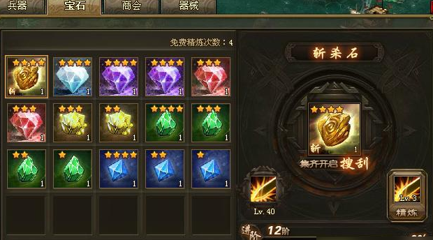 宝石系统是提升武将战力的核心机制之一,其作用主要体现在属性强化、技能附加及战略资源优化等方面。宝石可镶嵌于装备底座,为武将或士兵提供攻击、防御、血量等基础属性增益,同时部分高阶宝石还能附加乱舞、斩杀、暴击等特殊技能效果。不同颜色的宝石对应不同属性,例如蓝色宝石侧重攻击力提升,紫色宝石可能增强生存能力,玩家需根据武将特性灵活搭配。宝石可重复拆卸使用,且通过精炼系统升级后属性增幅更为显著,这使得宝石成为长期培养的重要资源。