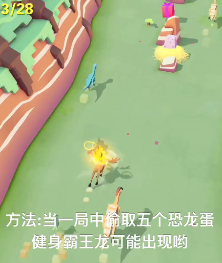 霸王龙的触发条件是收集五颗恐龙蛋,这些蛋会随机散落在跑酷路线上,通常藏在石头后面或者高处。建议你多骑乘速度快的动物,比如迅猛龙或者翼龙,方便快速探索地图。每次跑酷时注意观察地面和空中,恐龙蛋闪着微光,稍微留心就能发现。收集满五颗后,霸王龙会在后续的跑酷中随机出现,记得提前准备好套索。
