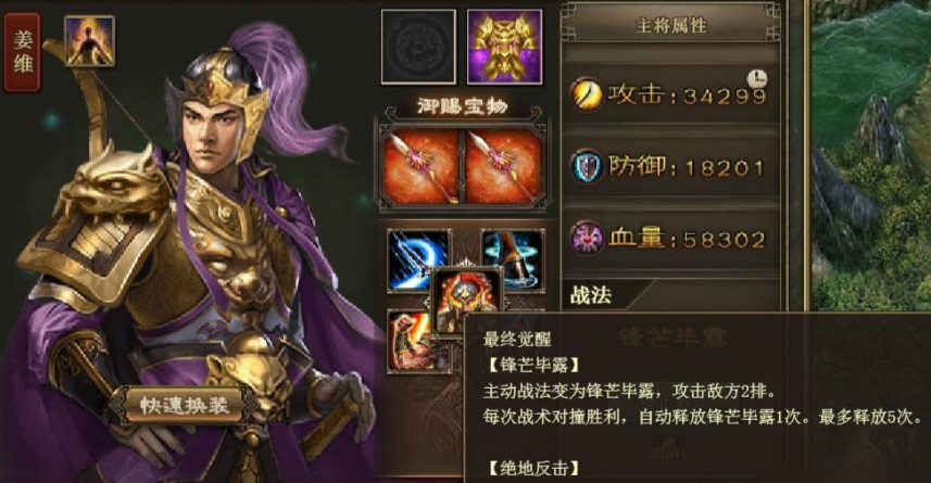 费耀副本是五丈原战役中的第二个关卡,位于淮阳古道,地形为平原。这一关的特点是敌方小兵战法能打三排,但战法可以被抵挡。如果咱们没有带战法防御的套装,比如护罩或真烛龙,很容易被秒杀。所以关键是要选对武将和装备,利用抵挡机制来减少伤害。推荐用真烛龙太史慈、真灵龟关羽、真凤凰姜维和真驱虎张飞,副将带上真霸下周泰,这样能最大化抵挡效果。