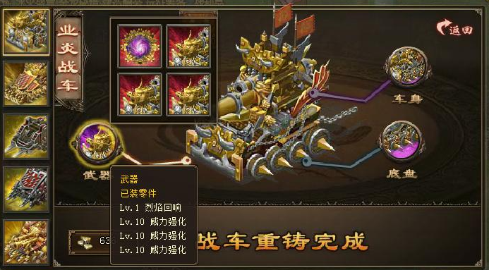 升级战车需消耗陨铁作为主要资源,每级固定消耗80陨铁。战车分为前车12级与后车3级的双重阶段,初始1级无属性加成。每次升级除基础属性提升外,重铸进度达到20%节点时会触发额外属性奖励。护甲层数的提升对实战影响显著,6级护甲可解锁4层防护,10级护甲则带来质变级的防御能力。建议优先将护甲升至6级以快速形成战力优势,此阶段需累计投入700陨铁。