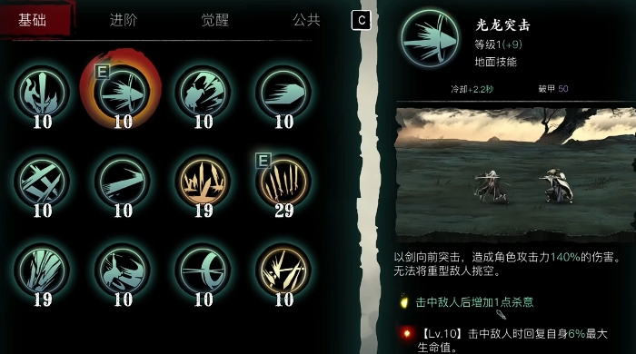 前期还没转职时,可以先用连环腿+巨龙剑过渡,光龙突击+四方剑气这套组合清怪效率不错。巨龙剑的单体伤害和四方剑气的范围效果能应付大多数场景,升级优先级也很高。转职后记得根据装备调整技能链,比如无锋路线需要堆防御属性,轻羽则更依赖暴击和攻速。心法方面优先选择减CD和增加杀意恢复的,这样能保证技能循环更流畅。