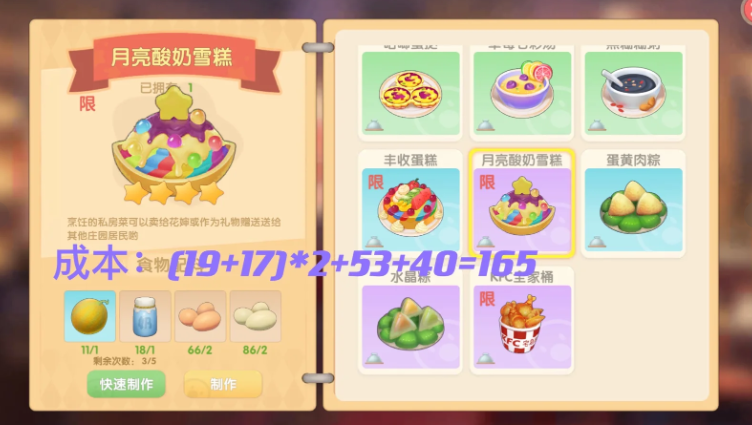 该菜品在夏日冲浪活动中具有特殊价值,是完成限定图鉴收集的必要条件。集齐包含月亮酸奶蛋糕在内的全套夏日限定图鉴后,可领取憨憨小猪套装奖励。制作时建议提前规划材料产量,由于鸭蛋、鸡蛋与毛毛菇炒蛋等热门菜品原料重叠,需根据自身餐厅经营策略合理安排养殖数量,避免出现原料短缺影响整体收益的情况。