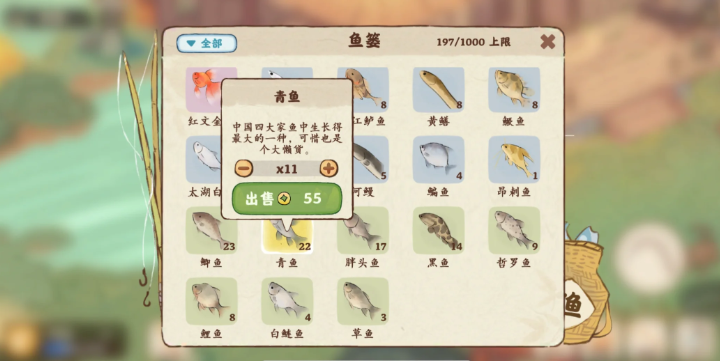 鱼篓满了别着急,打开鱼篓界面就能看到所有收获的鱼,点击想处理的鱼选择出售就能换成铜钱。如果想留着做菜,就去厨房把普通鱼加工成鱼肉,这样既不占空间又能储备食材。高级鱼千万别随便卖掉,它们放在池塘里不仅能观赏,后期还可能触发特殊任务或活动需求。
