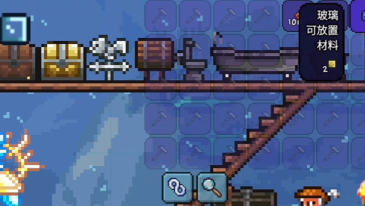 蓝瓶在游戏中是恢复魔力的重要道具,制作过程需要先准备好基础材料。咱们需要收集沙子,在熔炉旁边将沙子烧制成玻璃块,接着继续用熔炉把玻璃块加工成空玻璃瓶。拿着空玻璃瓶跳进水里,水位要没过角色身体,这时打开制作面板就能看到瓶装水的选项,点击制作就能获得瓶装水。有了瓶装水才能进行后续的蓝药制作。