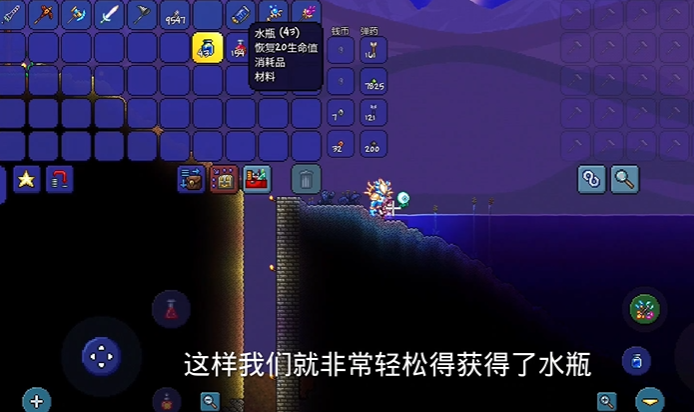 除了自己制作外,蓝瓶还有其他获取途径。在地牢两侧的平台上有时会发现现成的蓝瓶,用工具打下来就能直接获取。如果咱们已经解锁了商人NPC,可以花费银币在他那里购买弱效魔力药水,虽然效果稍弱但胜在方便。要注意的是使用任何魔力药水都会触发短暂的耐魔性减益,这段时间内再次使用效果会降低。