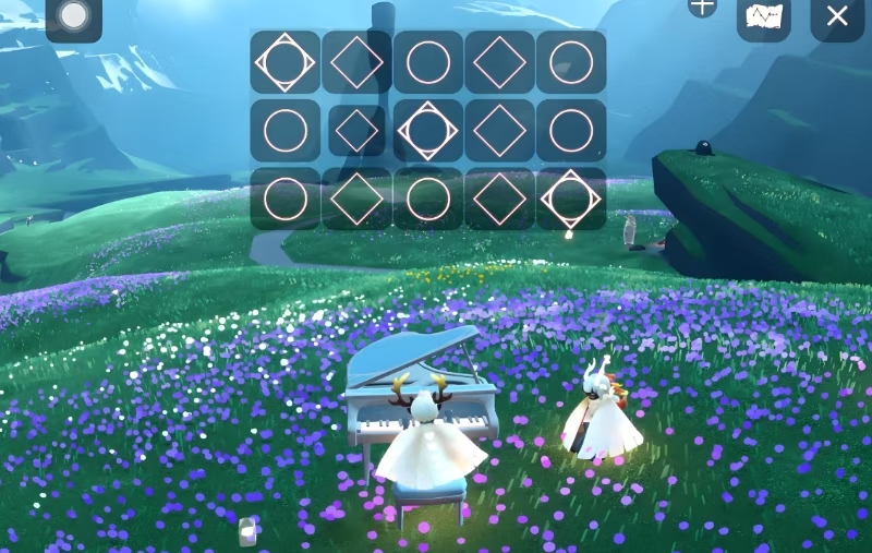 如果觉得收集爱心太麻烦,也可以选择直接购买大音乐家礼包。点击游戏右上角的购物车图标进入商城,礼包售价128元,里面包含白色钢琴和一些乐谱。这个钢琴和先祖兑换的功能完全一样,只是颜色不同,喜欢白色外观的小伙伴可以考虑。购买后礼包会直接送到背包里,非常方便。解锁钢琴后,就可以开始享受弹奏的乐趣了。游戏里的钢琴有15个按键,虽然比现实中的钢琴少一些,但足够演奏很多好听的曲子。
