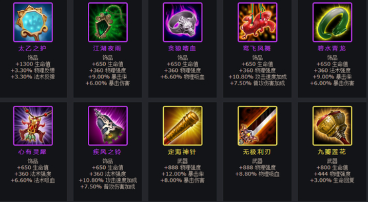 神威套装适合近战攻击,提供额外的攻击力和生命值加成,龙鳞套装侧重于防御,增加防御力和生命值,烈焰套装则专注于输出,增强攻击力和暴击伤害,玩家可以根据自己的游戏风格和战斗场景来灵活选择这些套装。清心符可以提供生命值和冷却缩减,锦袈裟也有类似效果,龙渊甲增加物理强度和生命,丝披风提升法术强度和生命,七星剑则强化法术强度和冷却缩减,这些装备都能帮助李靖在战斗中更持久和高效。