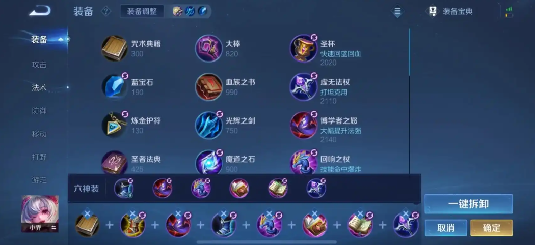 有了回响之杖打底,接下来的装备就要让你的伤害产生质变。博学者之怒是小乔的核心装,出了它之后,你的所有法术攻击都会获得巨大提升,这时候一扇子打出去脆皮半管血就没了。为了确保你的伤害能打得动出了魔抗装的对手,虚无法杖提供的百分比法术穿透必不可少,有了它,哪怕对面坦克顶着魔女斗篷,你的流星砸下去他也会非常疼。这样,回响、帽子、法穿杖三件套出来,小乔的秒人能力就基本成型了,闪现接二技能控住人,紧跟着大招和一技能,绝大多数脆皮都扛不住这一套。