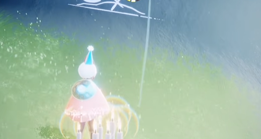 后续的任务流程也大致相似,都是接任务、看动画找线索、根据线索找编钟、最后回去提交的循环,但每个编钟藏的位置都很有巧思。第二个编钟的线索可能在钟塔附近的山丘上,点燃蜡烛后壁画会提示它在空中的浮岛上,你需要飞到海上那几个倒三角形的浮岛群中,找到中间那个带洞的岛屿,钻进去才能找到。第三个编钟则常常藏在瀑布右下方的空地里,点燃蜡烛后线索会指向瀑布底下的水母洞,你需要顺流而下,跳进发光水母聚集的洞穴里才能发现目标。