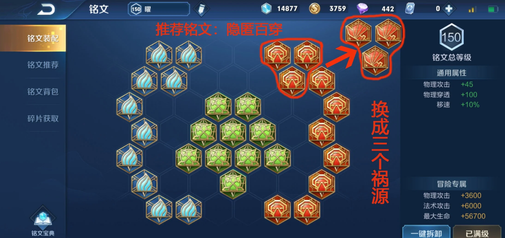 铭文方面,肉曜通常建议搭配5个调和、5个隐匿、10个鹰眼和10个异变。调和提供生命回复和最大生命,增强线上续航,减少回城次数;隐匿增加物理攻击和移速,提升机动性和支援效率;鹰眼和异变则是经典的百穿组合,提供高额的物理穿透和攻击力,确保曜在前中期就能对敌人造成有效威胁,哪怕面对坦克也能打得动。这套铭文既弥补了移速,又保证了穿透,让曜在后期即使把暴烈之甲换成冰脉护手,也能进一步优化冷却缩减,持续作战能力更强。铭文也可以根据对局微调,比如控制多时多带点调和提升韧性,但整体思路还是围绕穿透和生存来构建。