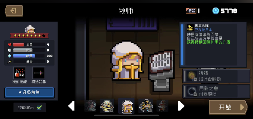 生存和续航同样关键,这时候牧师的价值就体现出来了。牧师的核心能力就是治疗和辅助,她不仅能给自己回血,还能给队友加血上护盾。关卡深入,怪物的伤害越来越吓人,牧师强大的治疗能力能极大提高整支队伍的容错率,让你不会因为一次失误就前功尽弃。 她的护盾技能也能有效抵挡大量弹幕攻击。选择牧师可能杀怪没那么爽快,但绝对是最稳扎稳打的选择,能让你在漫长的爬塔过程中保持一个健康的状态。