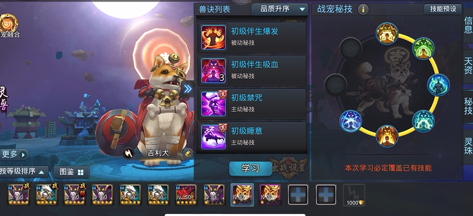 像嘲讽或魅惑这种技能才吃星级加成,它的招牌击飞效果不受星级制约,资源紧张的话不用着急升星。但技能格数量很关键,至少得开出四个格子塞满核心技能。初期用初级秘技把格子撑满,后期再考虑用灵兽融合碰运气突破上限。先确保跃起螺旋冲击和天赋点满,再补冲锋秘技,有多余资源再点生存属性。