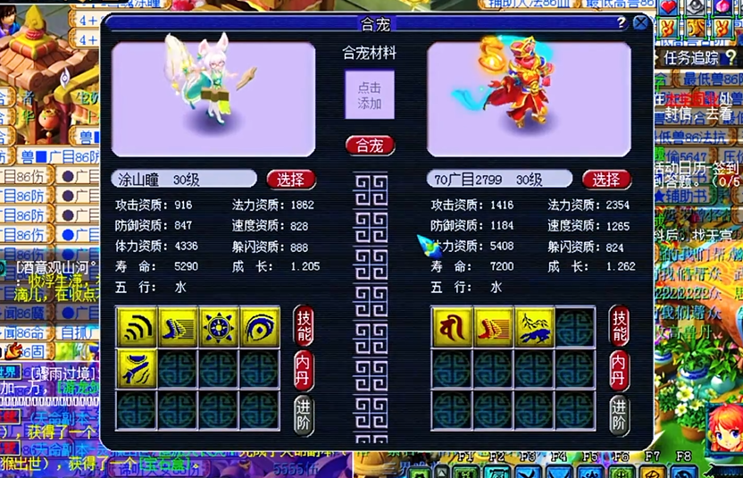 除了技能,合宠出来的宝宝资质和成长也是成败关键。你不可能指望用两只资质平平的宝宝,一合成就蹦出个各项满值的极品,这概率堪比中彩票。靠谱的思路是,尽量选择那些单项资质或者成长本身就很突出的胚子来和广目配对。比如你合血攻宠,就找攻击资质高的;合血法宠,就找法力资质高的。这样合成出来的新宝宝,至少在那个关键资质上有了较高的保底。