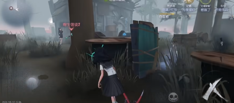梦之女巫的复活机制主要体现在她通过技能生成和控制信徒,从而在战场上持续施加压力。梦之女巫本体处于隐身状态,无法直接与场景交互或攻击求生者,但她自带一名原生信徒,这名信徒会始终跟随本体且不会被驱除。玩家需要利用本体快速移动寻找求生者,并通过寄生技能在目标附近生成新的信徒,这些信徒可以执行攻击任务,其生成和消亡循环构成了梦之女巫的核心战术基础。