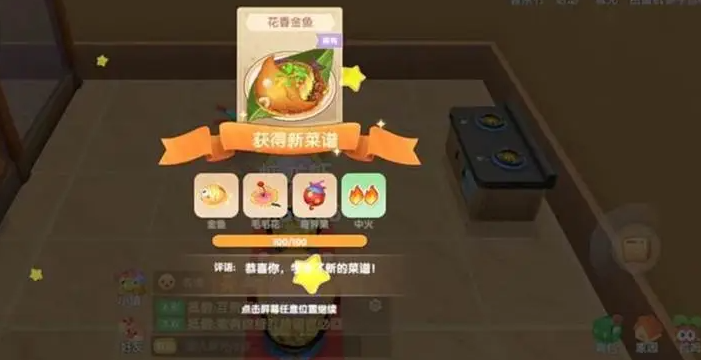 食材准备好后,就可以进入厨房开始烹饪。使用游戏中的微波炉或烹饪界面,将金鱼、奇异果和毛毛花作为主料和辅料放入,关键是选择中火烹饪,并且火候要调到100%以确保成功。研究一次菜谱后,你就能永久掌握花香金鱼的做法,以后在餐厅经营中就能随时制作了。注意整个过程中火候的控制很重要,一定要设置为中火,这样能保证菜品的口感和研究成功率。