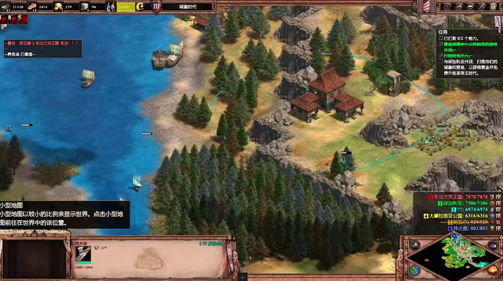 多造几个城镇中心持续爆农民,金矿和石头记得派人去采,升帝王后可以出骑射加戟兵的组合,对付保加利亚的龙骑兵海特别有效,这关地图中间有片浅滩可以渡河,偷袭敌人后方往往能出其不意。在击败前期敌人后,建议建立城镇中心结束游牧状态,并组建以游侠为前排抗伤害、骑射输出的部队来对付东法兰克王国,尽量避免同时与保加利亚开战,因为那样会面对两路夹击且战线过长。