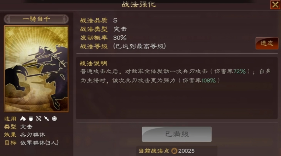 战法选择必须契合吕布依赖普通攻击和决斗的特性。吕布自身最理想的战法是携带一骑当千和鬼神霆威,这两个高伤害的突击战法能让他在决斗中的输出最大化。辅助武将的战法则服务于保护和增益体系,其中三势阵至关重要,它能显著提升吕布自带战法天下无双的发动率。郭嘉通常携带此战法,而黄月英则可以携带虎豹骑来进一步提高全队的突击战法发动概率。兵书方面,吕布推荐胜而益强、胜战和武略的组合,用以强化续航和爆发能力;辅助武将则可选诱敌之策、救主等保护性兵书。