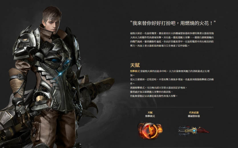 枪炮大师,即破坏者,虽然移动速度较慢,但技能以范围攻击为主,且可以装备重甲,生存能力优于其他输出职业。其专属的炮击模式在积攒能量后能造成极高的伤害,输出循环相对简单,是一个兼顾了生存与高爆发的选择。毁灭者俗称大锤,也是近战职业中打击感厚重、伤害高的代表,其专属技能能显著提升攻速,擅长进行瘫痪和部位破坏。