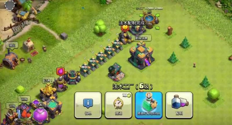 法术工厂的升级扩展了法术容量,让玩家在进攻中能携带更多增益效果,如治疗或狂暴法术。法术研究应紧随兵种升级,治疗法术能延长部队生存时间,而狂暴法术可大幅提升输出效率。暗黑法术工厂的解锁进一步增加了战术多样性,允许使用毒药或冰冻等控制类法术。合理搭配法术与兵种,能在对战中以较小代价取得更大战果。