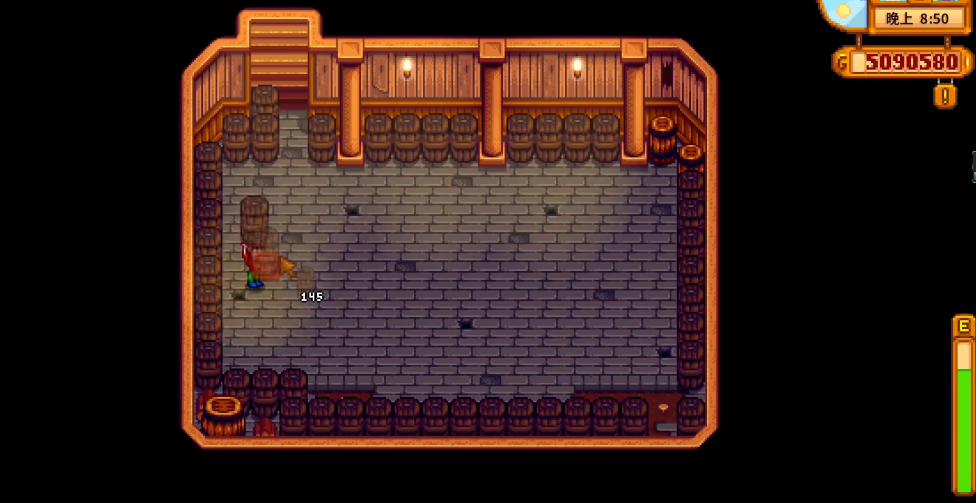 酿出基础品质的酒之后,你还可以进一步提升它的价值,这就要用到地窖了。地窖不是一开始就有的,你需要把自家的农舍升级到最高级别之后才能建造。建好地窖,里面会自带一些木桶,你也可以自己用木材和硬木制作更多。把酿好的普通品质的酒放进这些木桶里进行陈酿,酒会慢慢提升品质,从普通变成银星,再到金星,最后达到顶级的铱星品质。每提升一个品质等级,酒的售价就会大幅上涨。虽然陈酿整个过程需要挺长的时间,但这是让你的酒卖出最高价的必经之路。