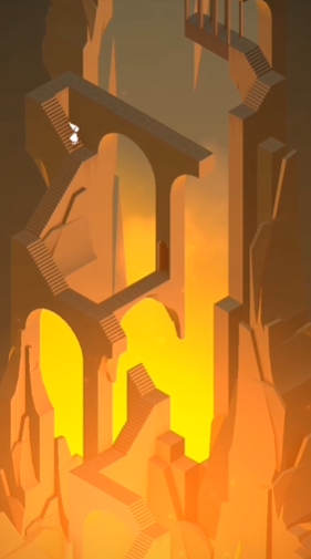 进入关卡后,首先控制艾达沿楼梯向下行走。当踩到特定台阶时,脚下的结构会发生翻转变化。继续下行至悬空平台处,点击左侧链状按钮将平台滑向一侧,此时会延伸出新阶梯。随后移动场景中的方形平台至右侧,为艾达创造通行路径。继续向下触发剧情:柱子沉入熔岩后,图腾会从下方升起。让艾达骑上图腾,沿轨道将其移动至最左侧的按钮处按下,第一部分即完成。