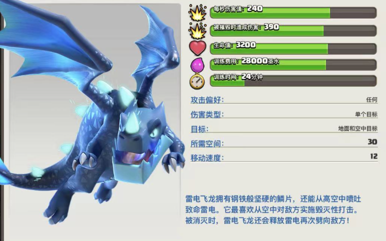 雷电飞龙的连锁攻击是其核心玩法,理解其连锁机制是掌握该流派的关键。雷龙的攻击方式为蓄力后释放连锁闪电,每次电弧最多可以攻击五个建筑,但其连接传导有严格的距离限制。闪电链的有效连接范围是相邻两格以内的建筑,通俗来说,若两个建筑之间的距离超过一个城墙的厚度,闪电就无法跳跃传导。这意味着敌方阵型中建筑的布局疏密程度,直接决定了雷龙的输出效率。密集的建筑群能让闪电链完美发挥,造成毁灭性打击;而建筑间距过大的阵型则会严重削弱链式伤害,使其进攻节奏受阻。在进攻前仔细观察阵型,判断建筑间距是否满足连锁条件,是决定是否使用雷龙流派的首要步骤。
