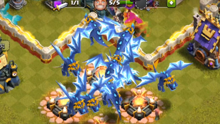 基于其连锁特性,阵型选择对雷龙流的成败至关重要。雷龙流适合攻打建筑摆放密集且易于清边的阵型,以确保其链式伤害能够最大化覆盖。应优先挑选防空火箭分散、防御建筑间距较小的阵型,这类阵型能让雷龙的连锁闪电发挥最大作用。而面对建筑松散、核心防御如地狱塔被城墙有效分割的阵型,或者防空火箭、吹风机等对空核心防御密集且错落布置的阵型时,则需要谨慎选择或改用其他流派。因为建筑间距过大会导致连锁中断,而密集的定点火力则会快速削减雷龙的数量。