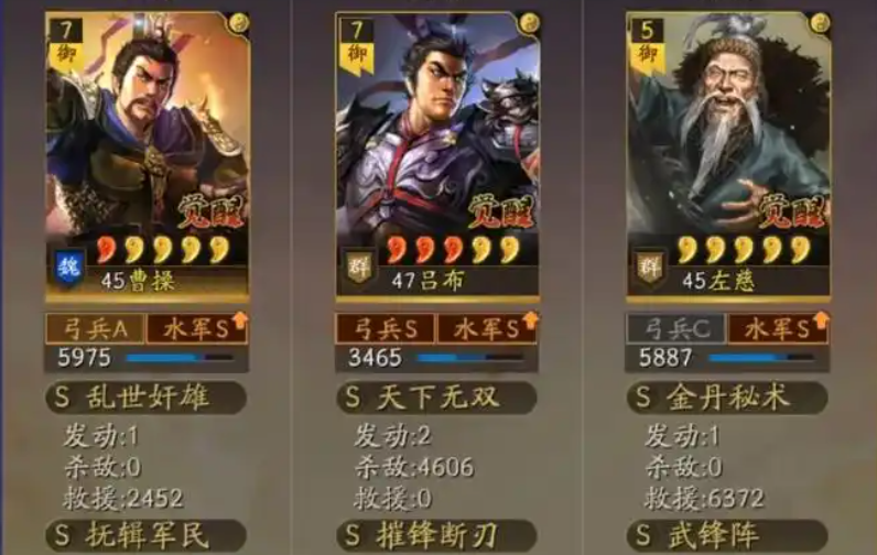 面对不同变种武锋阵需灵活调整思路,对抗武锋三仙以高谋略伤害搭配夺魂挟魄削弱属性,对抗武锋菜刀队用藤甲兵与抚辑军民减伤反击,全程保持先手压制与战法精准针对,就能稳定占据优势。