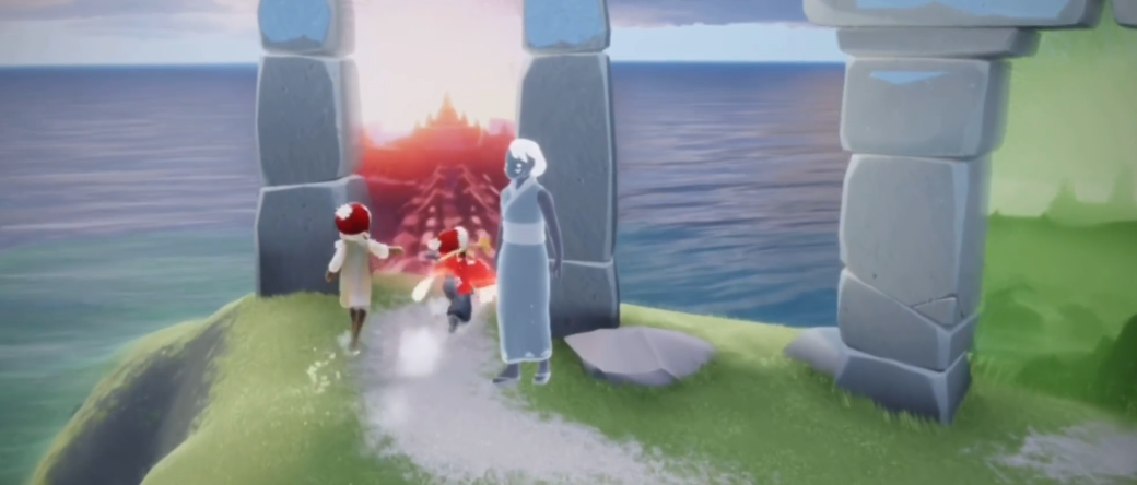 收集星光的第一步是前往先祖左边的亭子中间,在这里耐心等待,会有三束蓝色星光自动飞过来触碰收集。接着飞到入口上方的平台,找到有裂痕的位置继续等待,这里会有两束星光飞过来。这两个位置都不需要太多飞行技巧,适合翅膀数量不多的小伙伴们轻松完成。