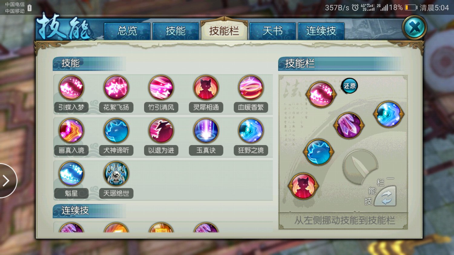 技能摆放要注意把保命技能放在顺手的位置。以退为进这种解控技能必须单独放,方便关键时刻使用。花絮飞扬和竹引清风可以形成连招,定身加易伤的效果在PVP中很实用。画真入境这个buff技能开局就要加,持续时间长收益高。纯肉灵契的操作相对简单,主要注意走位和技能释放时机就行。