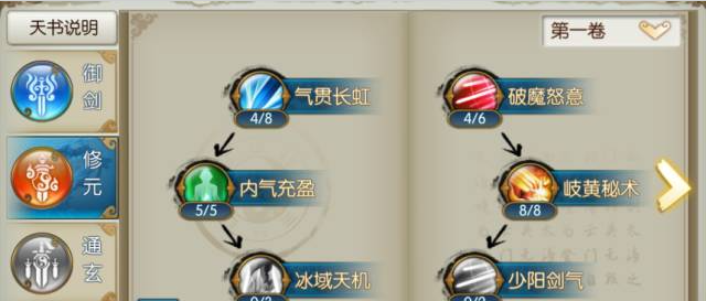 天书选择以通玄系为核心,重点强化神剑御雷真诀的伤害效果及控制能力。雷云奇变、内气充盈、岐黄秘术等天书节点可提升技能暴击率与真气转化效率,冰域天机则延长盛冰之寒的定身时间。风雷之怨和焚心厉雷进一步增加群攻范围与附加伤害,形成完整的输出循环。需注意天书加点需与技能联动,例如唤雷诀虽非主力技能,但因天书雷神震怒的暴击加成效果,仍建议保留1级作为过渡。