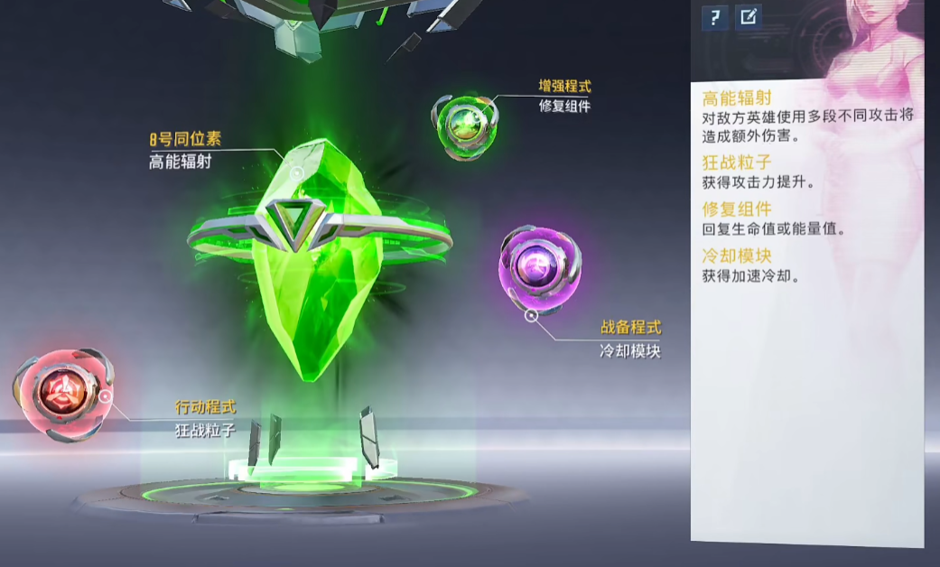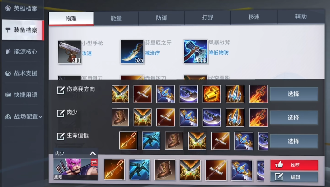 能源核心推荐选择战神降临、恐怖粒子、转化组件和活力模块。战神降临的攻速加成契合射手需求,恐怖粒子对残血目标的流血效果增强收割能力,转化组件通过击杀回复提升连续作战效率,活力模块的升级回血特性优化前期对线节奏。这套组合能全面覆盖鹰眼各阶段的属性需求,与装备体系形成联动。实战中需保持对被动视野的利用,提前洞察敌方动向,避免因走位失误浪费装备优势。