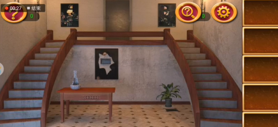 第8关的关键在于系统性地收集线索、破解密码以及合理使用道具。进入关卡后首先需要将大厅中央的花盆移动到最右侧的第三个底座位置,从中获取雕像道具。随后使用雕像砸碎桌面上的花瓶,取得隐藏的小刀。这一阶段需特别注意环境中的细节,例如楼梯上方两幅未完成的拼图壁画,它们将成为后续密码破解的重要依据。完成拼图后,墙面会显示字母TIZIAN与数字的对应关系,这是解开抽屉密码的关键线索。