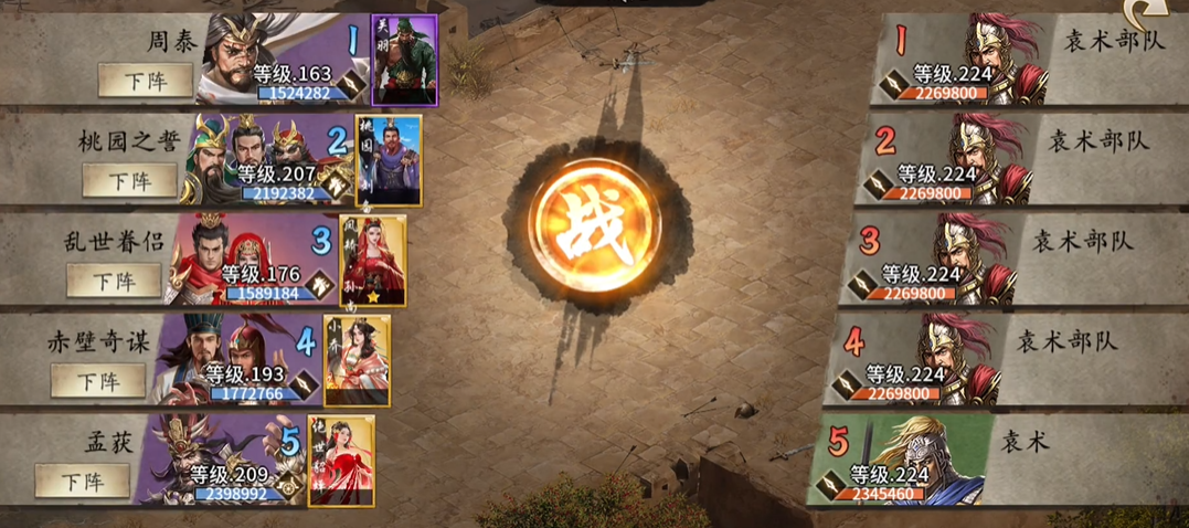 战斗过程中需注意敌方战车的护甲和血盾机制。袁术副本的NPC通常携带2-3车,5格护甲,并可能释放血盾或方圆阵,因此需要优先破坏战车或利用高爆发战法快速削减敌方前排。若无法破甲或对敌方部队造成有效伤害,建议重新调整阵容或提升装备强度。手动操作比自动战斗更灵活,能更精准地控制战法释放和部队走位。