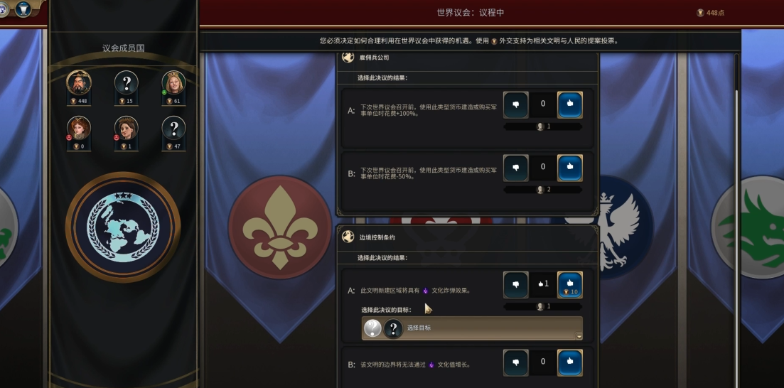 外交玩法也升级了,新增的世界议会让咱们能和其他文明一起投票决定全球事务。比如可以提议禁运某个国家,或者大家一起减少碳排放。如果能争取到足够多的票数,甚至能直接左右战局。别的文明也不是好忽悠的,得靠外交支持点数来拉拢他们,所以平时多交朋友总没坏处。