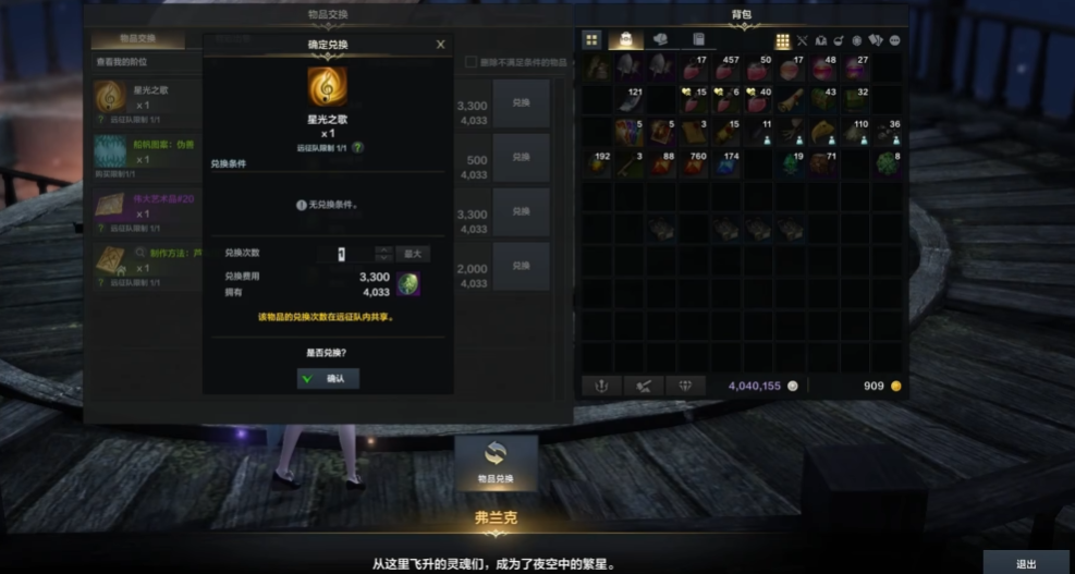 兑换星光之歌需消耗一定数量的游荡的灵魂,具体数量因版本调整可能存在差异。建议提前储备至少50个以确保一次性完成兑换。若资源不足,可重复完成贝隆大陆的每日任务或继续提升安逸谷NPC的好感度。星光之歌作为功能性道具,主要用于解锁隐藏区域或触发特殊剧情,建议优先获取以提升游戏体验。