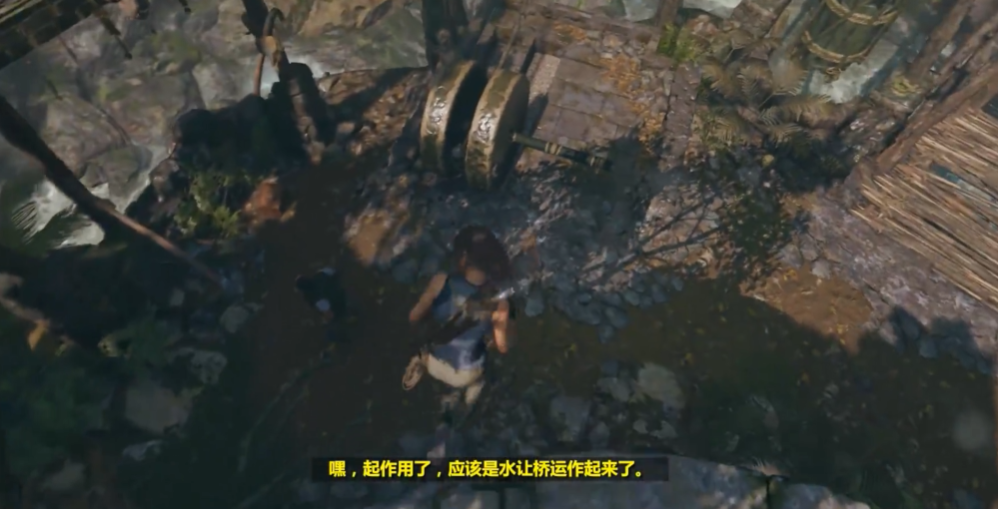 该谜题设计融合了环境互动与物理机制。水塔与石轮的联动体现了游戏对水力系统的模拟,而绳索箭矢的使用则延续了系列标志性的工具解谜逻辑。若首次尝试失败,可观察绿色容器的水位变化规律,优化行动节奏。断桥周边存在可收集的探险家背包,建议在解谜前优先获取以解锁区域地图标记。